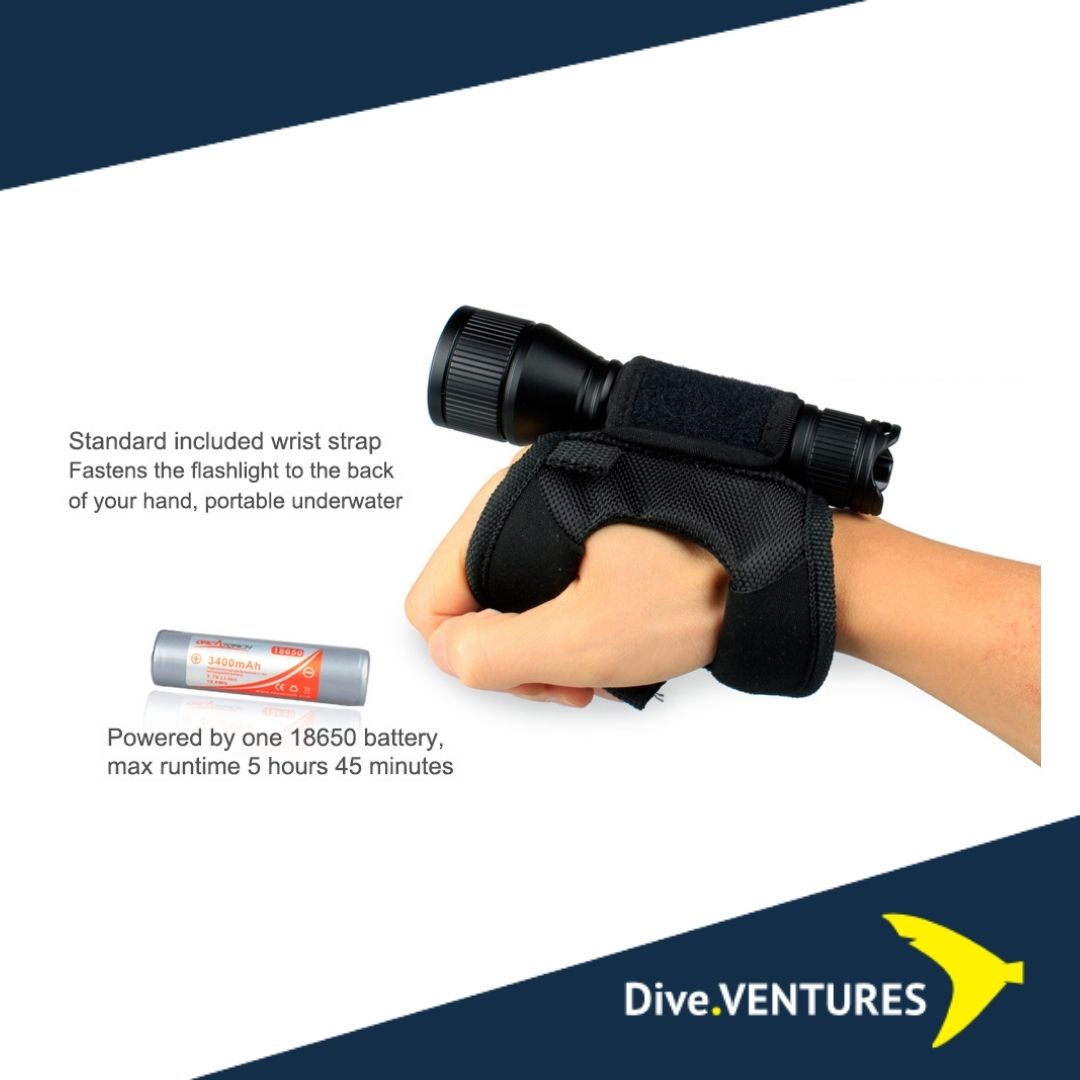 * Standardly included wrist strap fastens the flashlight to the back of your hand