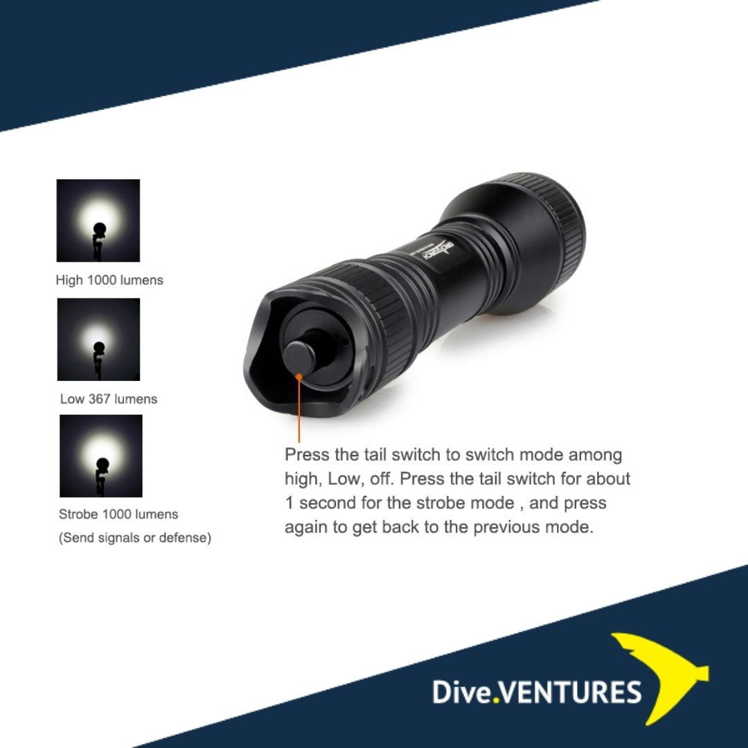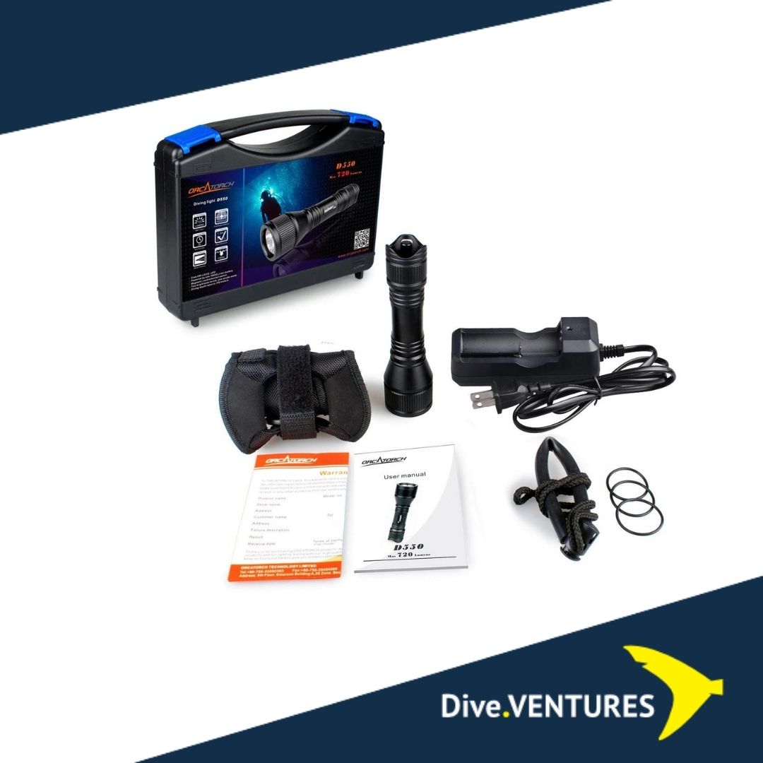 OrcaTorch D550 is a small and lightweight tail magnetic switch diving light. It is equipped with a totally sealed magnetic controlled tail switch which offers high waterproofness and easy operation underwater. Using the latest USA CREE XM-L2(U4) LED, max 1000 lumens output and over 5 hours 45 minutes runtime.
