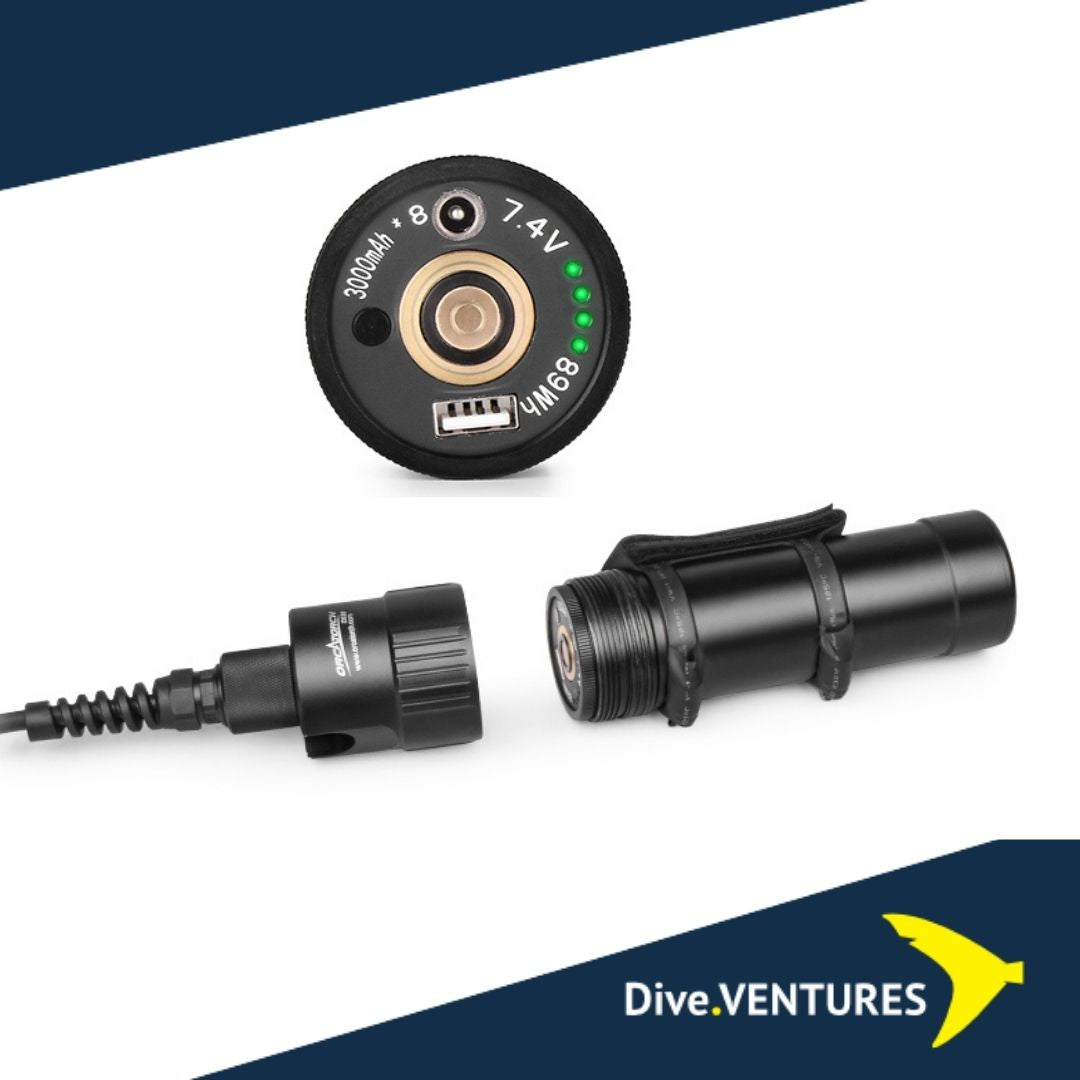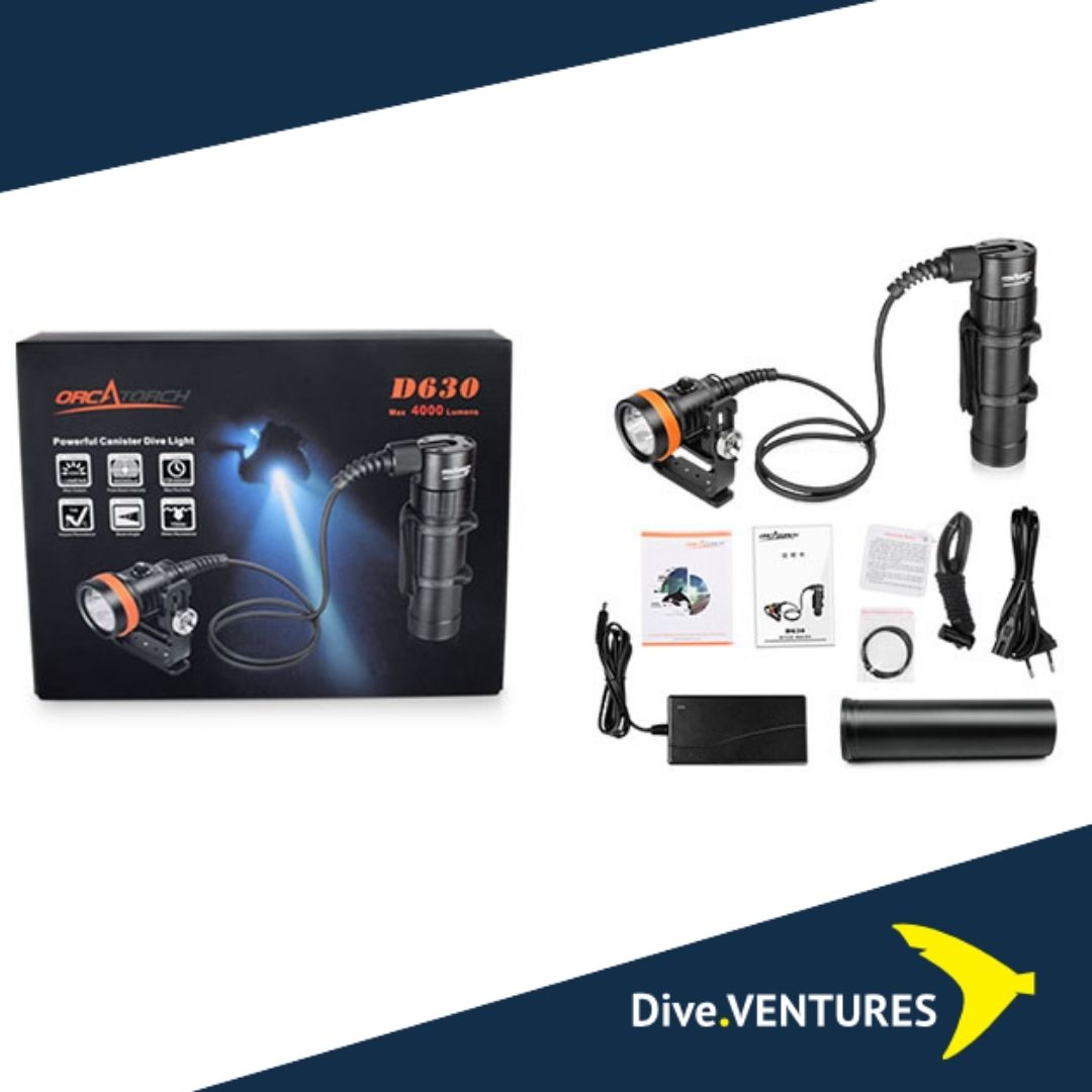 OrcaTorch D630 is a perfect canister dive light for cave diving, wreck diving or similar technical diving activities. The light delivers up to 4,000 lumens, and its angle adjustable cable allows both 90°and 180° rotation between canister and light head. This makes the OrcaTorch D630 perfectly suited for both side mount and back mount diving. Its large-capacity battery pack provides up to 5 hours of excellent diving experience at the brightest mode. The battery pack can also be taken out and used as a power bank.