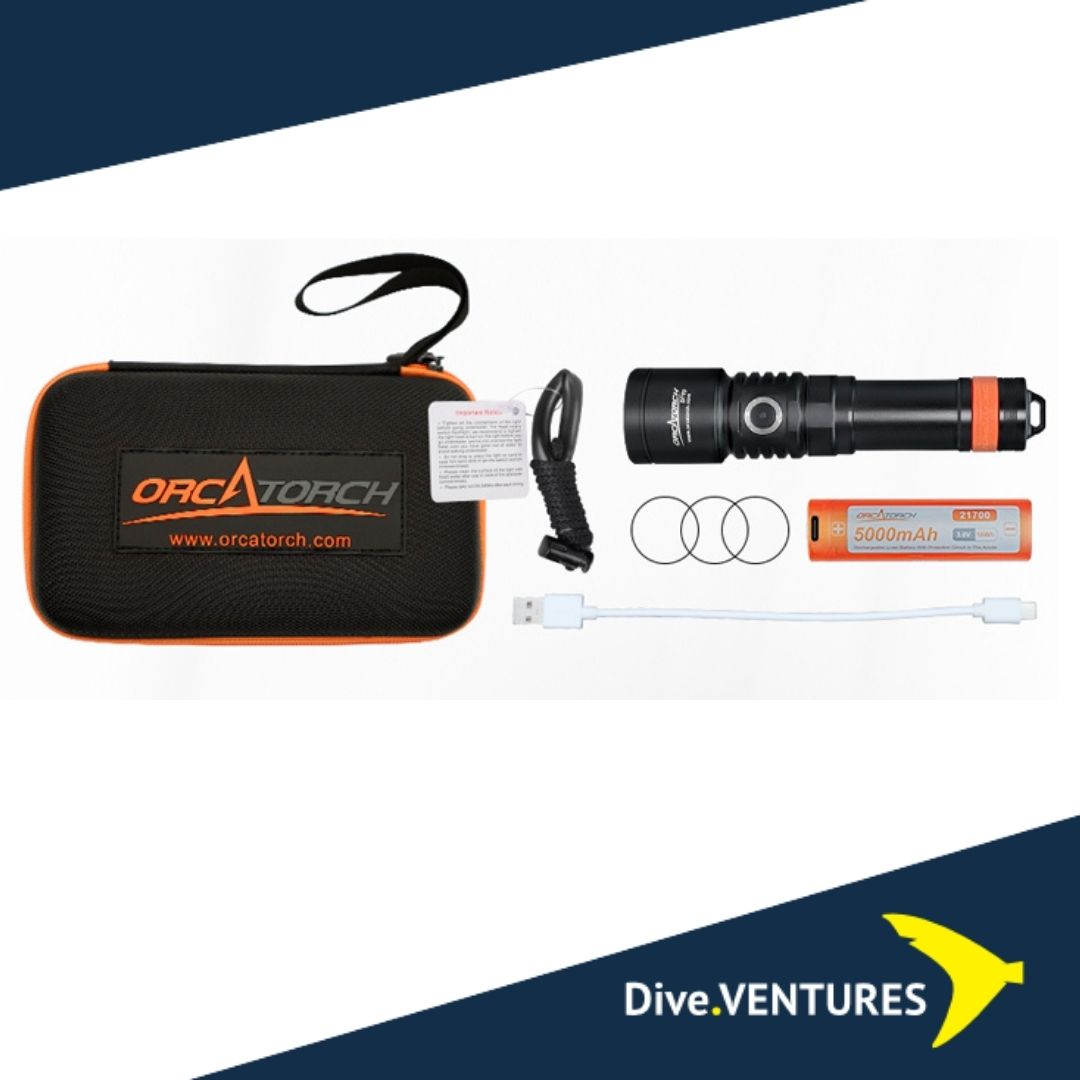 Whether you're a recreational or a professional diver, you'll find the ORCATORCH D710 dive light useful in your underwater activities. With max 3,000 lumens, the D710 is one of the strongest torches in its class. But, you have plenty of brightness settings to choose from if you prefer less power. It runs on one OrcaTorch 21700 5000mAh rechargeable battery with Type-C charging port, easier for you to charge it anywhere.