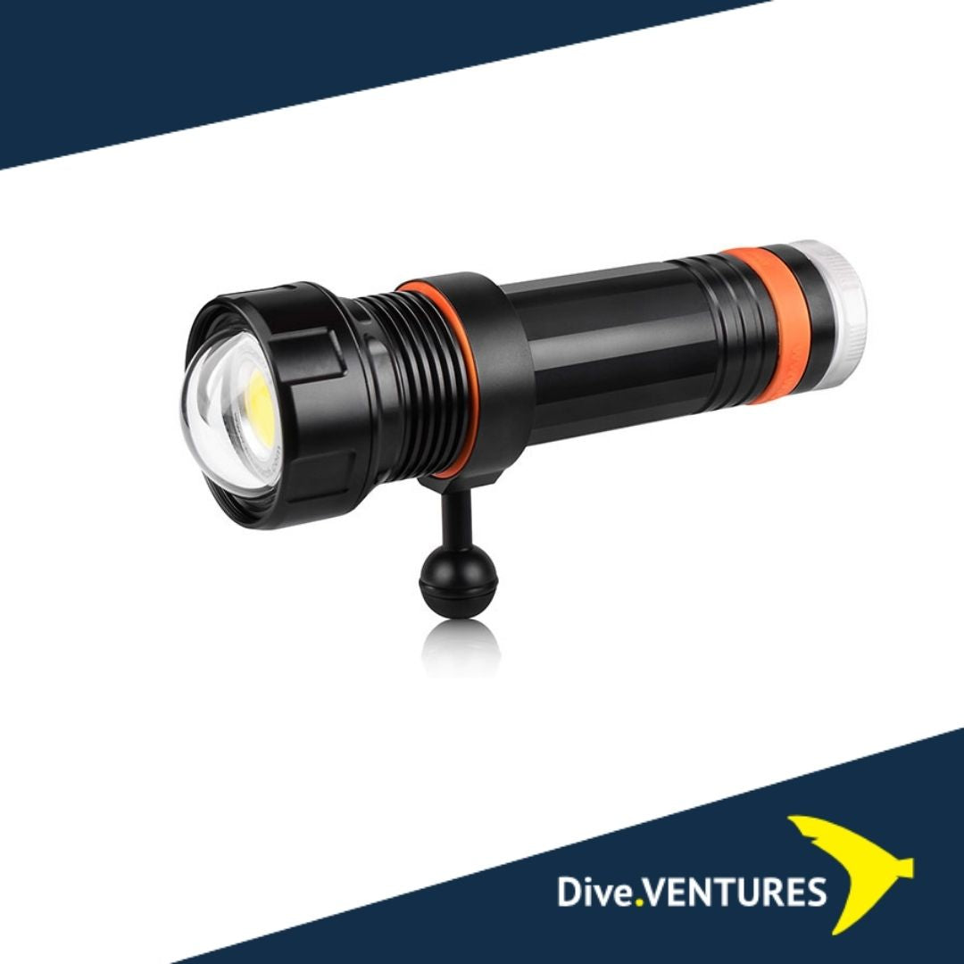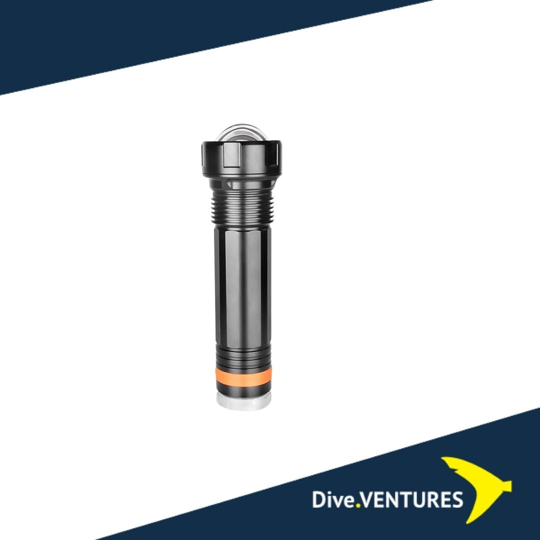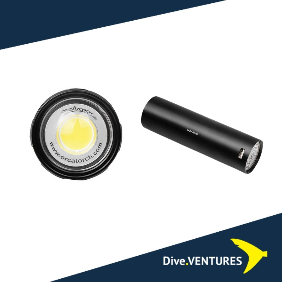 OrcaTorch D950V is a 10500 lumen LED video light specially designed for underwater photography. It features a CREE chip-on-board (COB) high power LED. The spherical toughened glass optical lens design can create even illumination with 120°wide angle beam. The tail LED indicator instantly displays the battery's remaining charge.